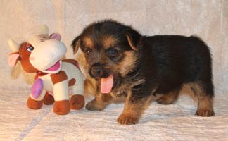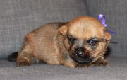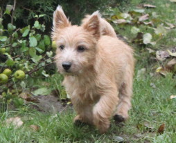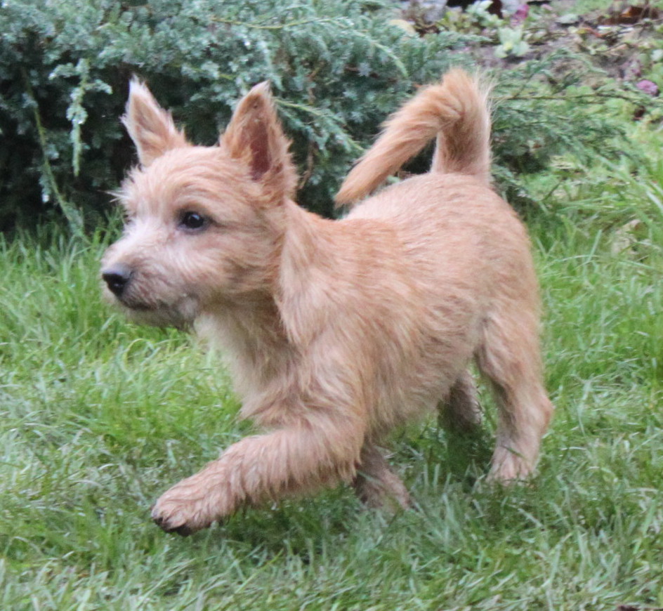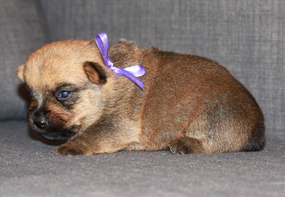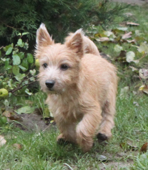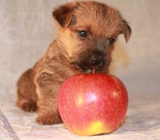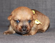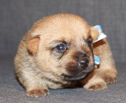 Щенки Норвич терьера, рожденные27 июня 2012 года: два мальчика и девочка рыжего окраса и один мальчик - чепрачного.